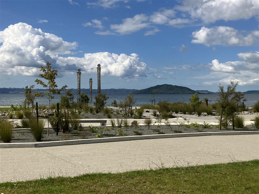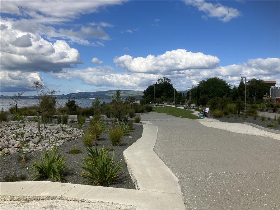 子供ずれで遊ぶ公園や、遊歩道での散策など、ロトルア湖をみながらゆったり過ごす場所です。