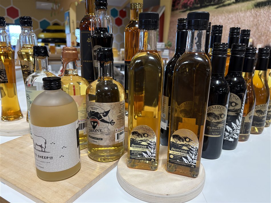 フカハニーハイブでは、各種ニュージーランド原生植物のハチミツの試食や、また、ハチミツを使った珍しいお酒の試飲も可能。